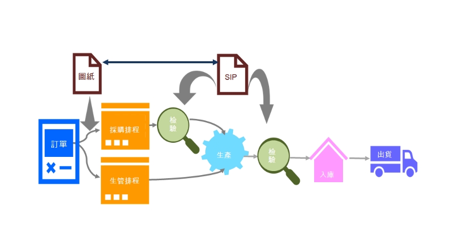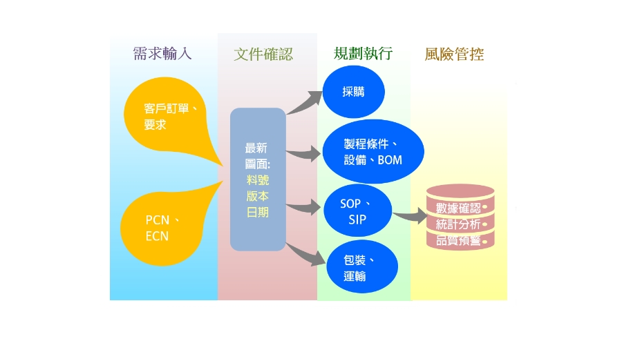此階段最主要是來自客戶的訂單,及其所指定的產品及圖面,所以包括了,訂單作業系統或來自PCN/ECN的變更。